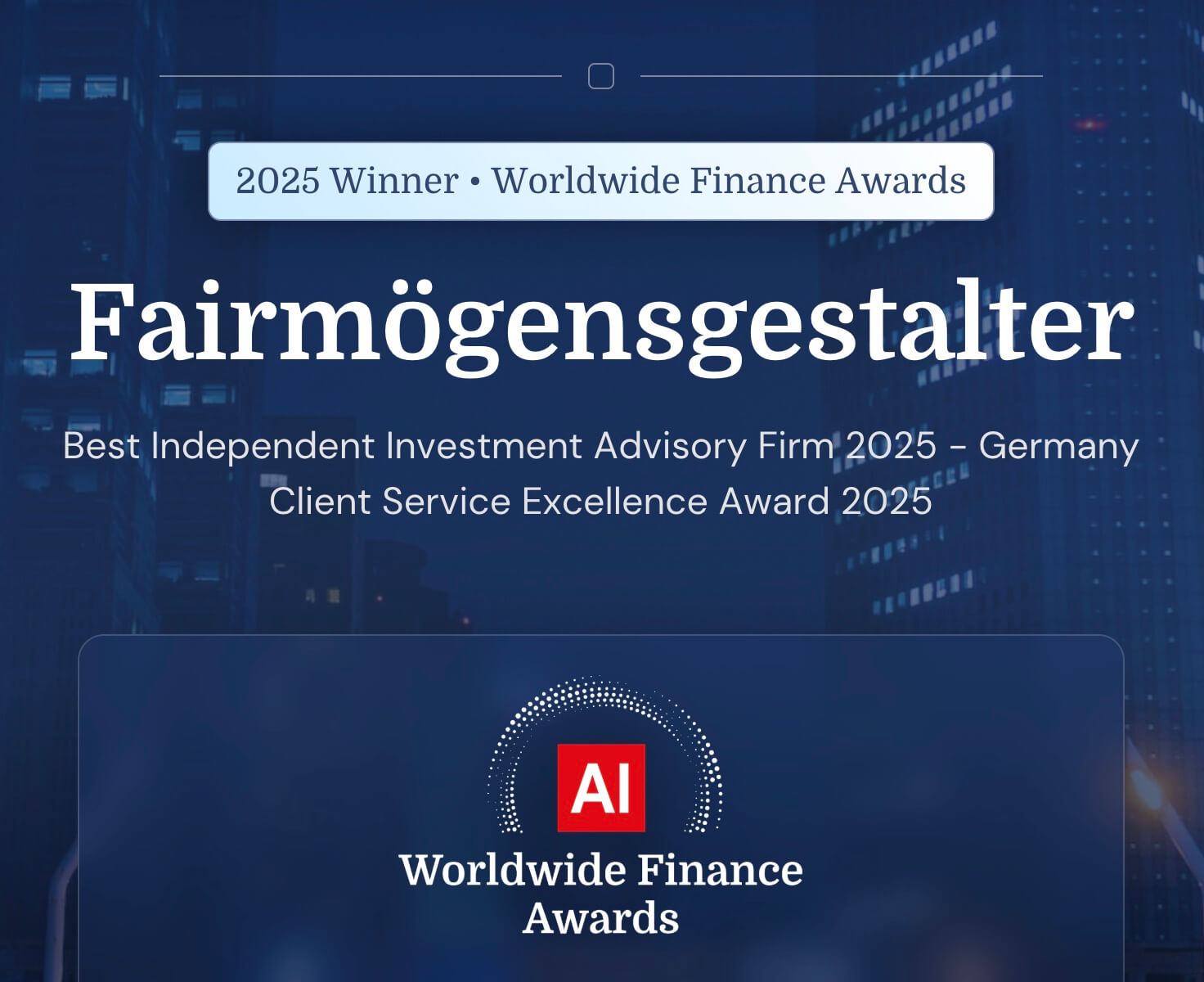 Meine Investmentberatung wurde 2025 mit zwei Worldwide Finance Awards ausgezeichnet: